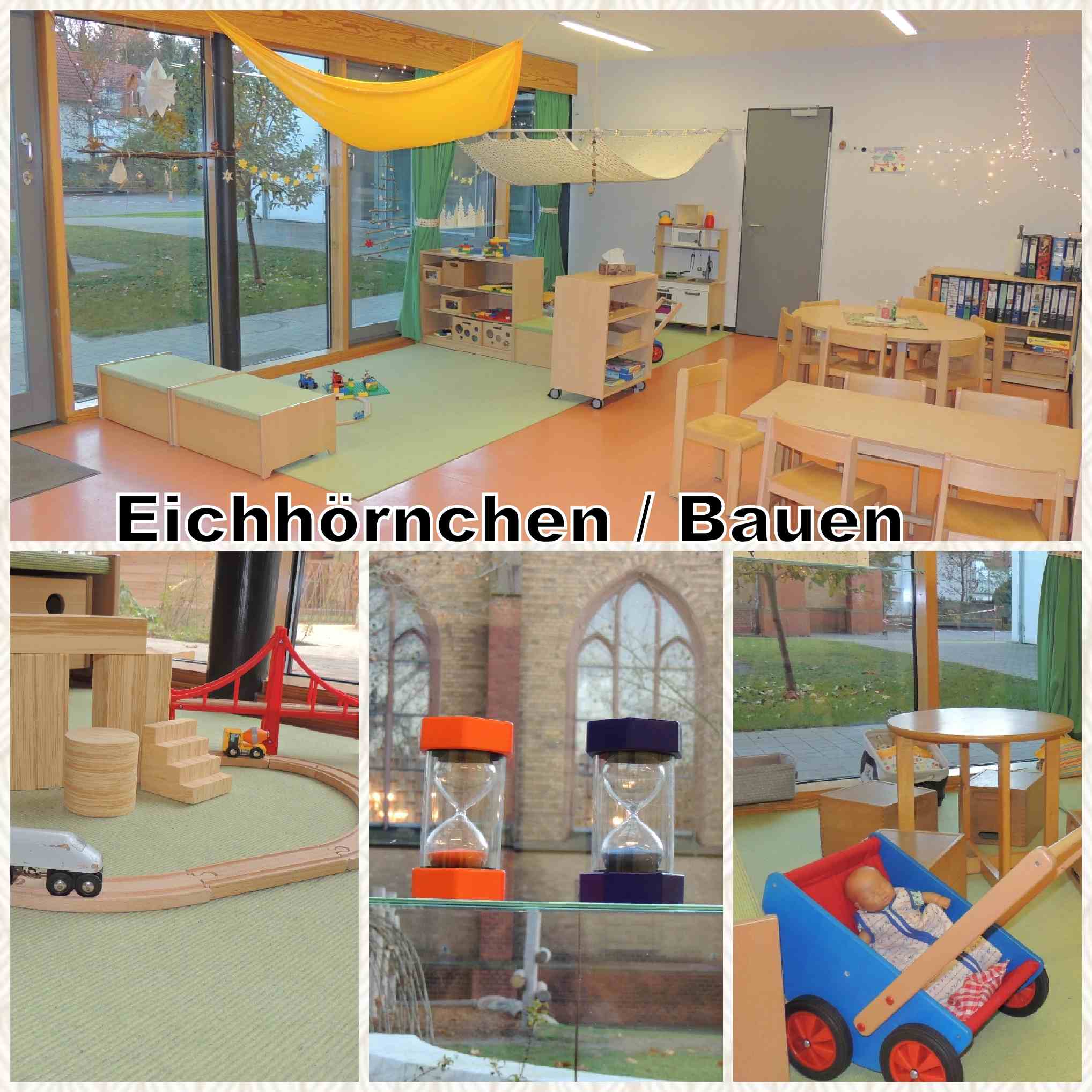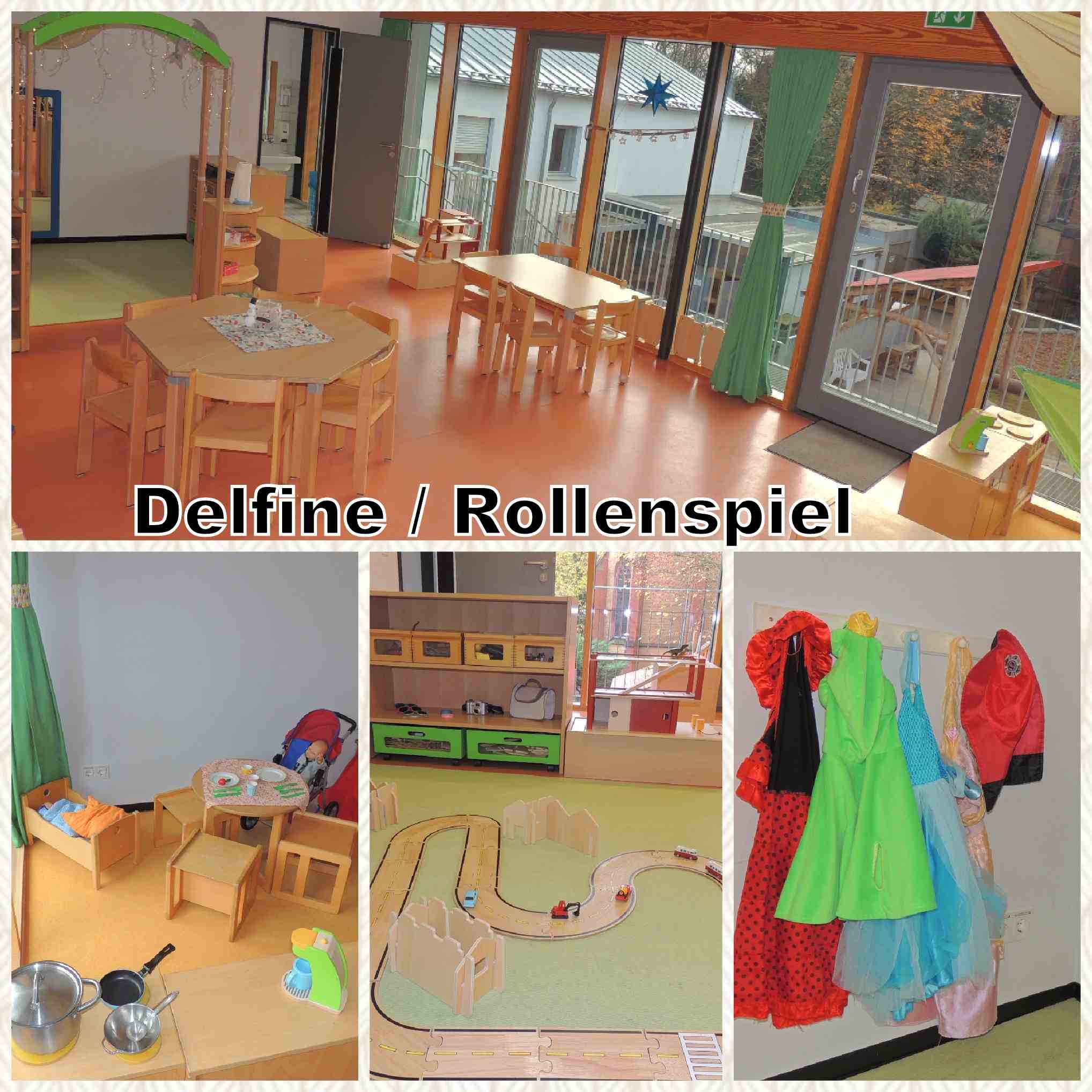 In der evangelischen Kindertagesstätte arbeiten wir in einem teiloffenen Konzept: Die Kinder kommen in der eigenen Stammgruppe an und entdecken im Anschluss die anderen Räume und Kinder im Kindergarten. So vielfältig wie unsere Kinder sind, so ist auch das Angebot. Neben den Stammgruppenräumen der Eichhörnchen, Delfine und Spatzen, in welcher morgens der Spielespaß beginnt, verfügen wir über weitere Funktionsräume, wie den Malraum und den Turnraum. In den Fluren gibt es darüber hinaus Rückzugsorte mit kleinen angepassten Spiele- und Leseecken, wie eine Leseecke oder das Puppenhaus. Im Malraum finden täglich Mal- und Bastelangebote, sowie Experimente statt. Von Klein bis Groß kann sich hier jeder kreativ auslassen und neue Kunstwerke gestalten. Der Turnraum ist unser Bewegungsraum, in welchem das Wort „Action“ seine Bedeutung findet. Immer in Bewegung wird hier gespielt, getobt und ganz viel gelacht. Mit Bällen, Tüchern, Fahrzeugen oder Turngeräten entstehen neue Ideen für das gemeinsame Spiel.